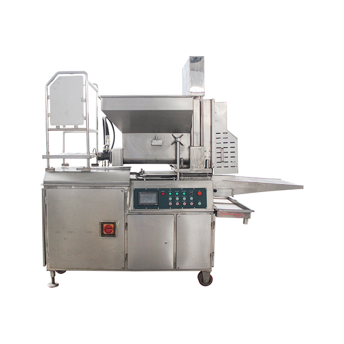 全自動(dòng)雞塊成型機(jī)將混合好的雞肉原料通過模板可以加工成卡通形、魚形、數(shù)字形、三角形、長(zhǎng)方形、圓形、心形及特殊形狀的產(chǎn)品,魚塊成型機(jī)自動(dòng)完成原料的充填,成型、輸出等工序。。肯德基麥當(dāng)勞雞塊成型機(jī)與浸漿機(jī).上粉機(jī)、上漿機(jī)、上面包屑機(jī)、上鮮康機(jī).油炸機(jī)、蒸煮機(jī)、速凍機(jī)、包裝機(jī)連成熟食全自動(dòng)生產(chǎn)線,生產(chǎn)土豆餅..蔬菜餅.漢堡肉餅、上校雞塊、黑椒雞塊.香辣雞塊.雞柳、魚排.牛排等產(chǎn)品。此成型機(jī)與烘烤箱組裝成生產(chǎn)線做寵物食品。