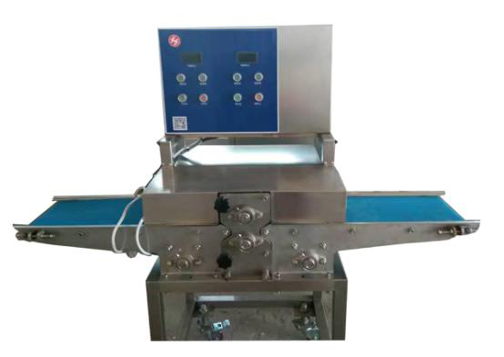 【 .輸送帶為寶石紋,厚度3mm,輸送帶與刀口幾乎貼合,肉片不會卷到輸送帶內(nèi)。