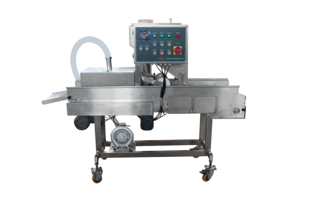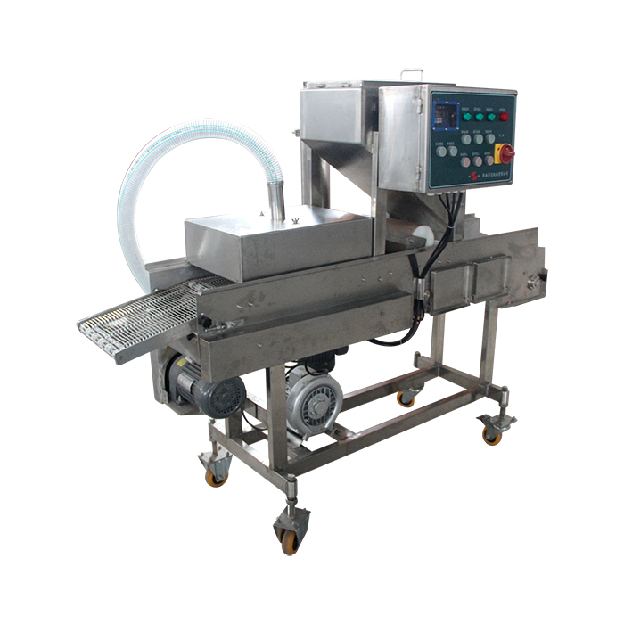 上屑機(jī)與上漿機(jī)配合使用,裹面包屑機(jī)可單獨(dú)使用。上面包屑機(jī)適合于中等以上干面包糠顆粒,全自動裹康機(jī)對市場上流行的漢堡肉餅、麥樂雞塊、魚香漢堡肉餅、土豆餅、南瓜餅、肉串等產(chǎn)品進(jìn)行上面包屑處理,是快餐店、配送中心、食品工廠理想的上面包屑設(shè)備。