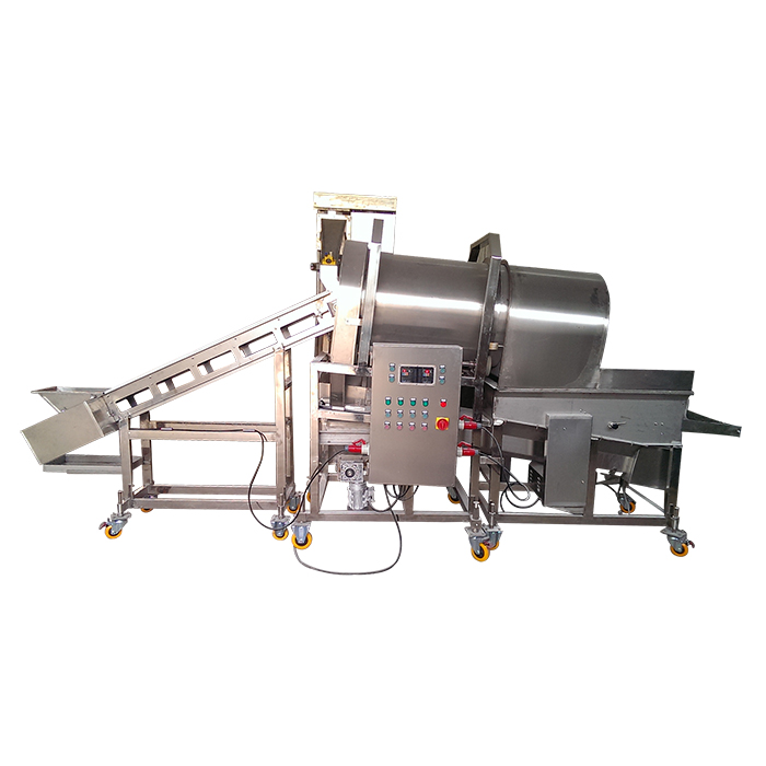 鹽酥雞生產(chǎn)線把滾揉好的原料經(jīng)過滾筒上粉,油炸,速凍等工藝做出不同厚度不同形狀的鹽酥雞。全自動(dòng)鹽酥雞生產(chǎn)線適用于肉類。此生產(chǎn)線的需要配置前處理設(shè)備和后處理設(shè)備:切塊,滾揉,油炸,包裝等設(shè)備.